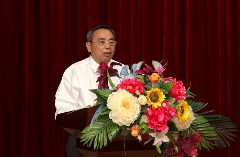 图为学校理事会首席顾问姚锡远教授发表讲话