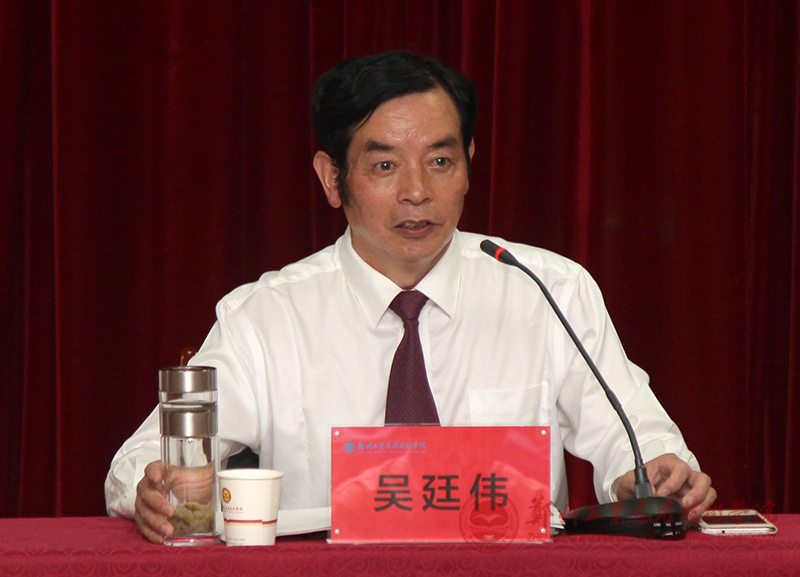 图为校党委书记吴廷伟同志主持表彰大会