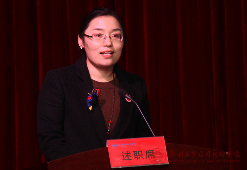 图为校党委宣传部部长李娟娟同志作述职汇报