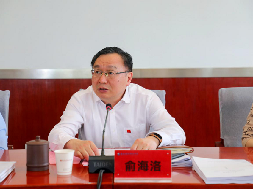 图为校长俞海洛教授主持评审会并讲话